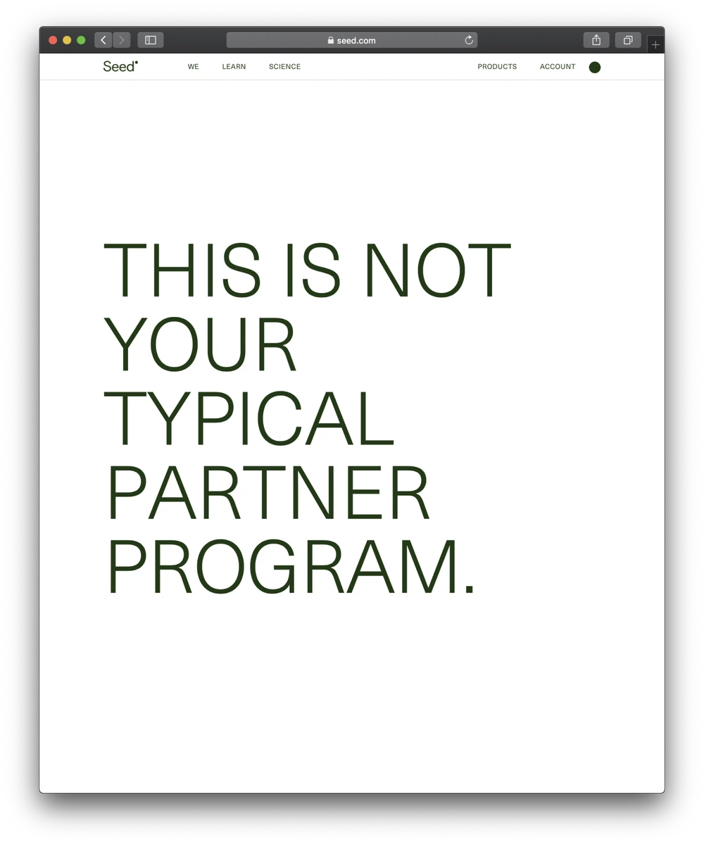 Usually, design agencies specialize in either digital or print, but the team behind Seed’s brand excelled at both here. The packaging is simple to the point where it’s almost anti-design, but the dead-on execution of the fine details — color, font, icon — make it masterful.