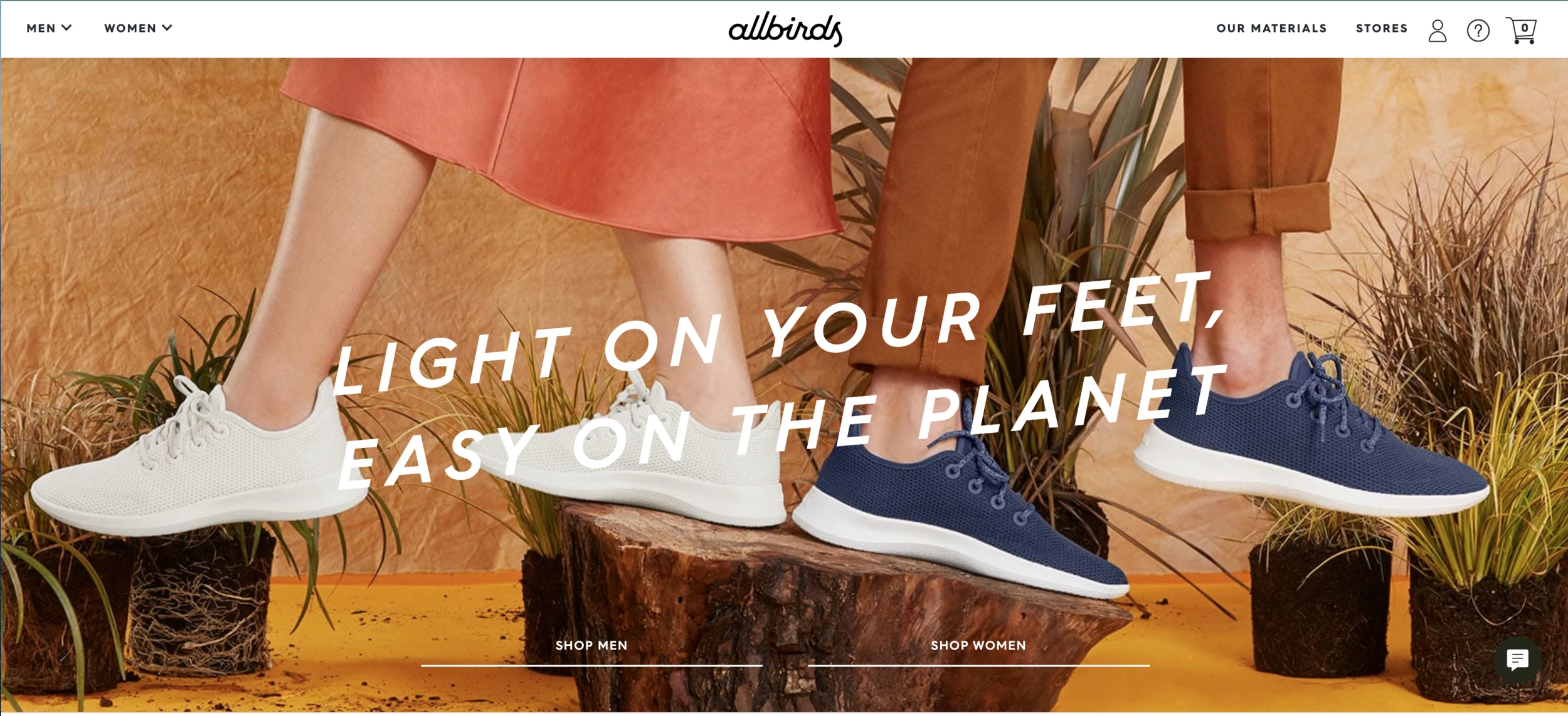 One of the best things about Allbirds’ original design is that it left room for branding evolution and growth. Now that Allbirds is a well-established, widely-recognized brand, they’ve begun to take some more creative risks. Increasingly, the photography featured on Allbirds’ site is expanding beyond its original immaculate, highly-manicured format to show unexpected details and textures, like the dirt sprinkled on the background of a recent homepage header (see below). The company has also begun to embrace more natural colors instead of the strictly pastel palette they started out with. Throughout all of the change, though, Allbirds has always been able to remain true to their brand.