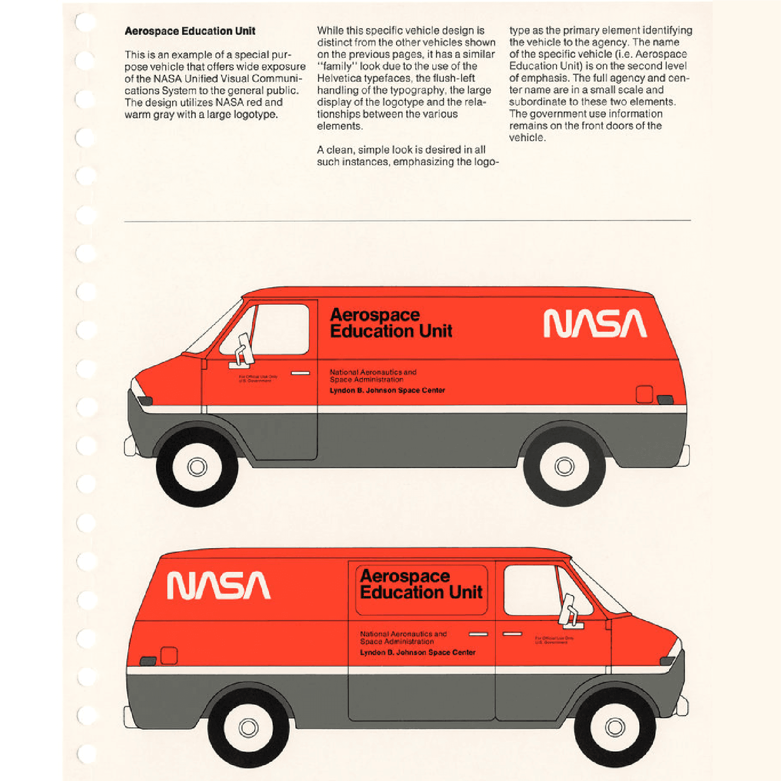 While NASA’s brand book, pictured above, was created in 1975, designers Richard Danne and Bruce Blackburn managed to create an enduring look that still holds up well today. Even the packaging of the book is amazing. I love the space-age metallic pouch it comes in, and the black texture on it that gives off a cool, retro, Xeroxed feel. Their logo, meanwhile, is a real testament to timeless design — while it did change in the 90s, NASA recently announced that they’re going to revive the old logo for use on a space shuttle called Falcon 9.