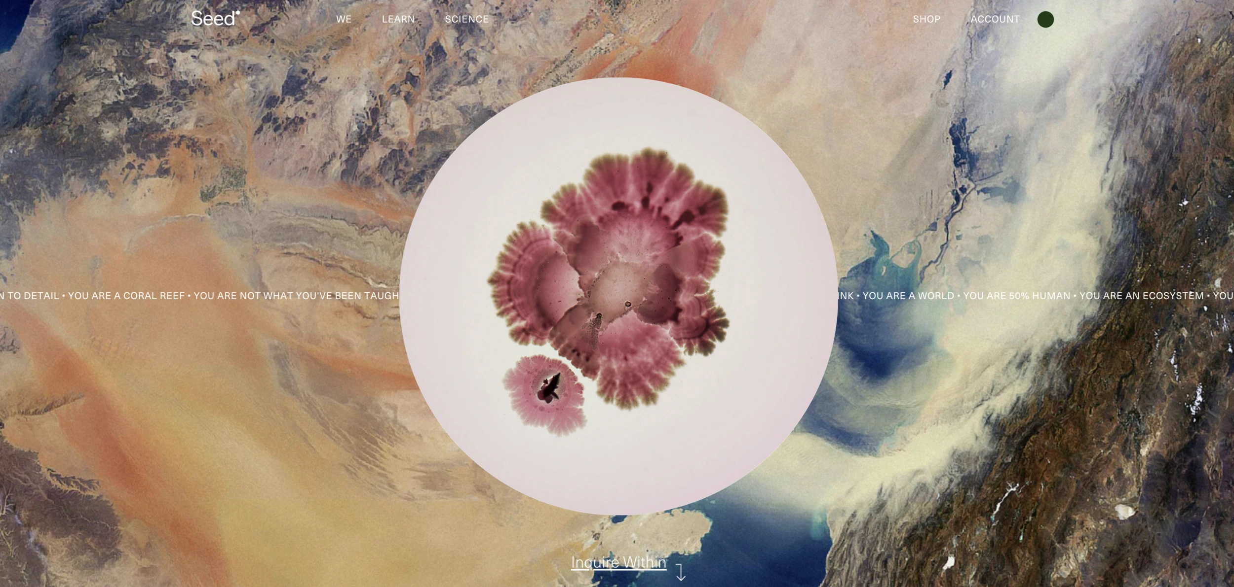 I’m calling it right now: Seed, a woman-run microbiome product company, is going to be a branding trendsetter. Designer Jam Sayne has created a brand identity design that really leans into the company’s grounding in science and research. The visual style strikes a perfect balance between a cutting-edge look and an organic, natural feel. The clean, straightforward sans-serif text of the website is complemented by artful, almost floral, images of bacteria blooming in petri dishes. Even the UI is inspired, with your icon serving as a magnifying glass as you hover over text and images.