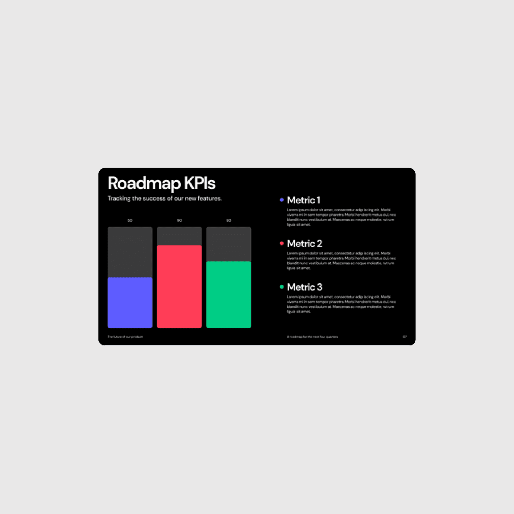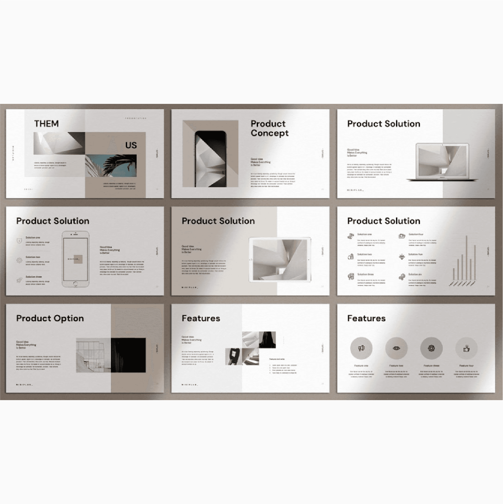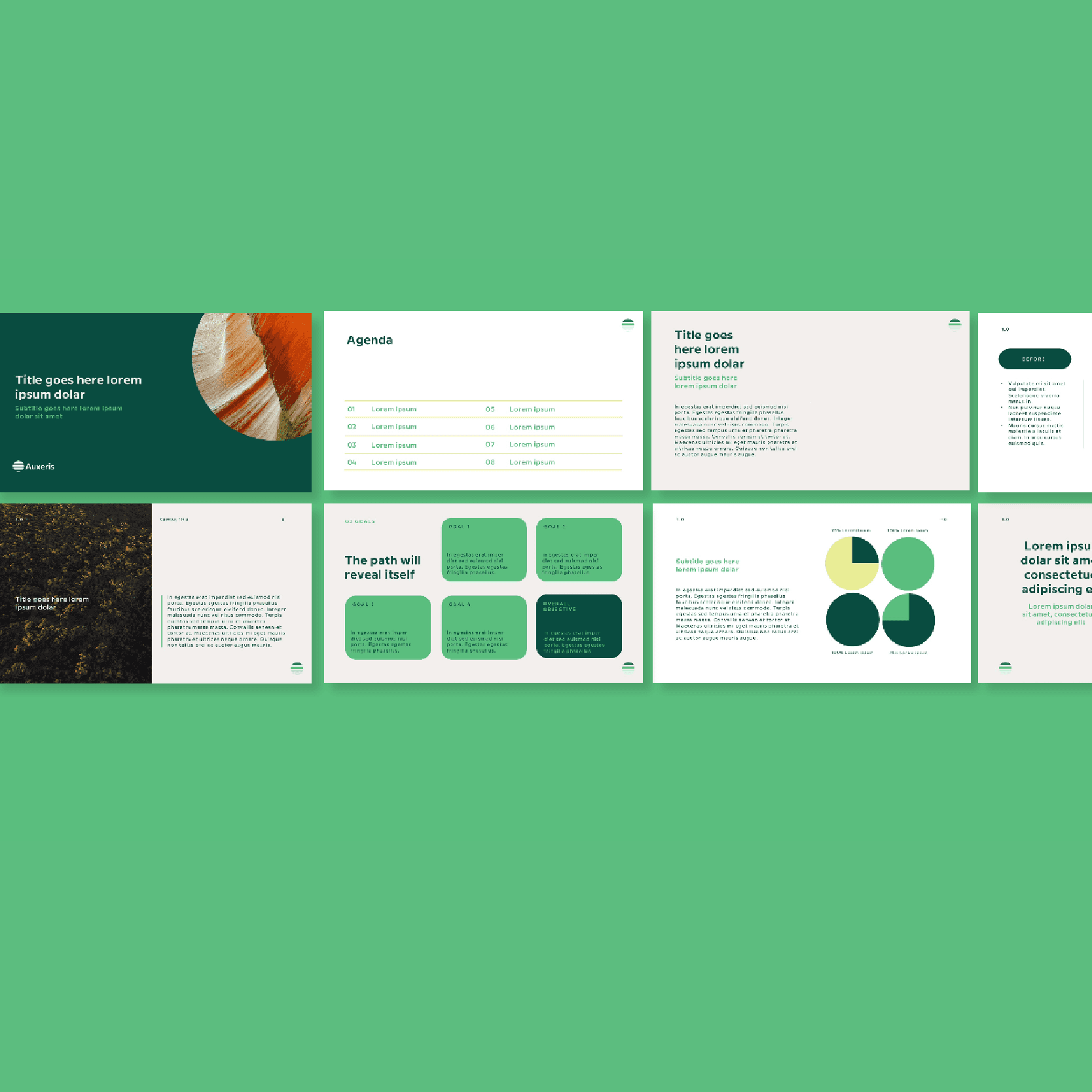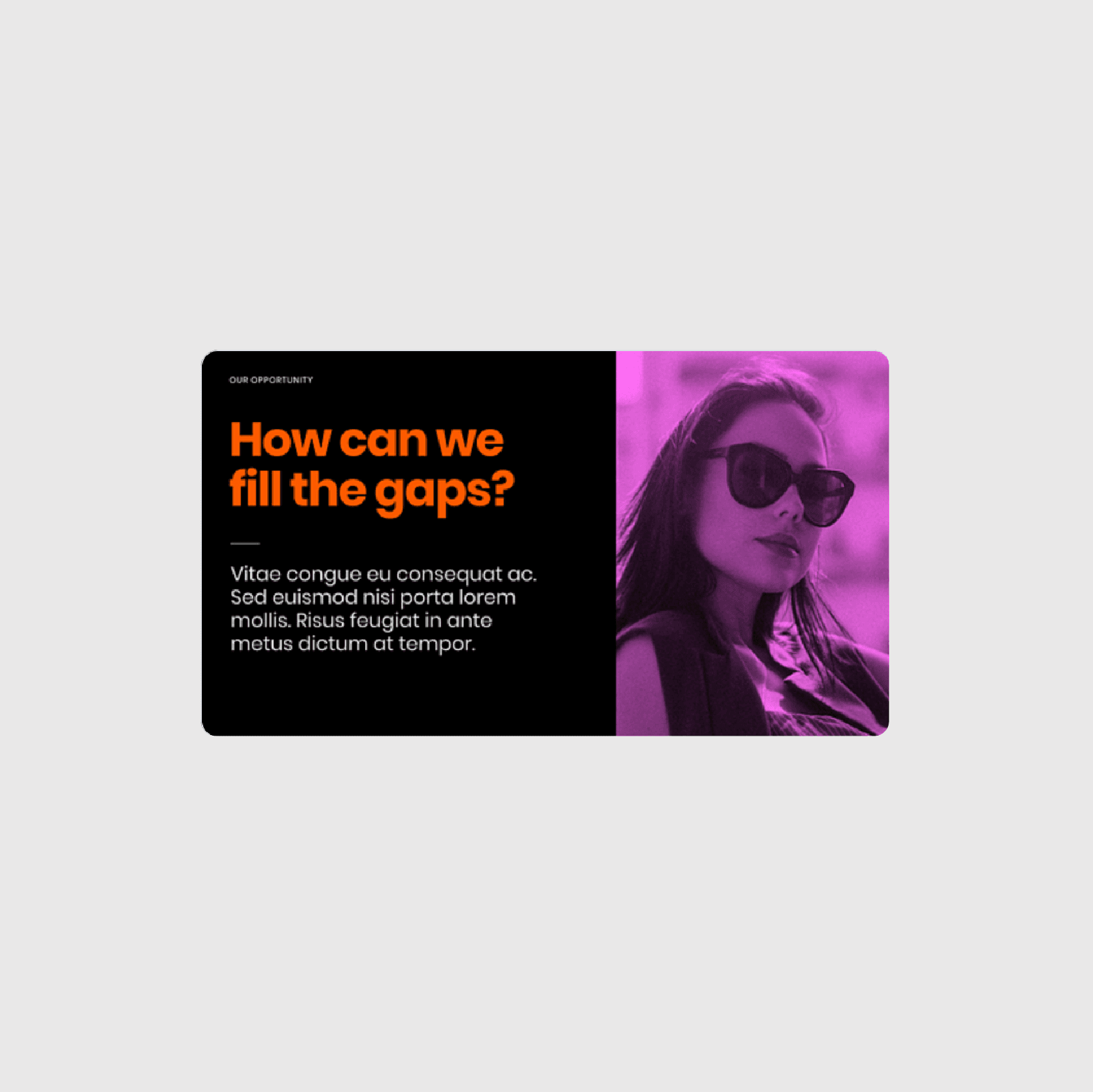 An easy way to add intrigue to your pitch deck design is through photos. Stock photos can be customized by putting them into various shapes, blurring, or tinting them or using them as a full-bleed background. Photos provide a simple way to bring the presentation to life.